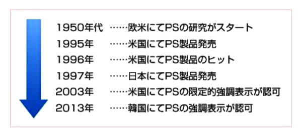PSは1950年代から、欧米にて多くの臨床研究が実施され、アメリカを中心に市場が形成されてきました。アメリカと韓国では、PS配合製品の強調表示が認可されているなど、海外では、PSはブレインフードとして非常に認知度の高い素材です。