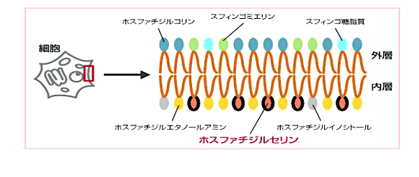 脳内でPSは脳細胞膜のリン脂質中の約18%を占め、特に細胞質内側に存在しています。